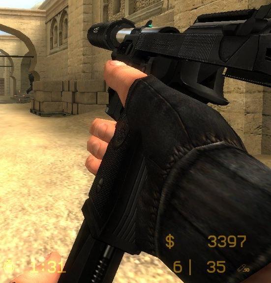 В архиве имеются скины для всех пистолетов (Glock, usp, p228, Desert Eagle, Dual Elites) и вместо ножа тоже пистолет(бьет прикладом).