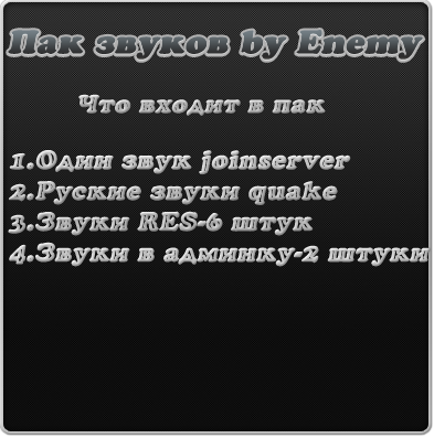 Пак - 8 звуков при входе на сервер + 6 звуков на голосвание.Делал я не сам но сборка моя. |